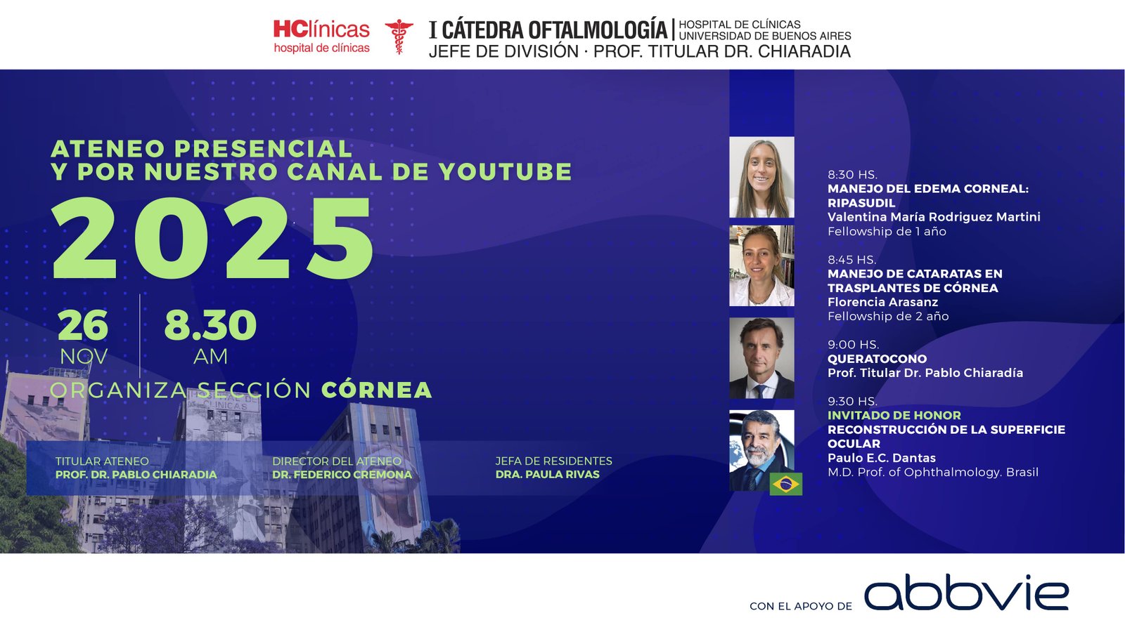 Jefe de la Division Oftalmología: Prof. Tit. Dr. Pablo Chiaradia